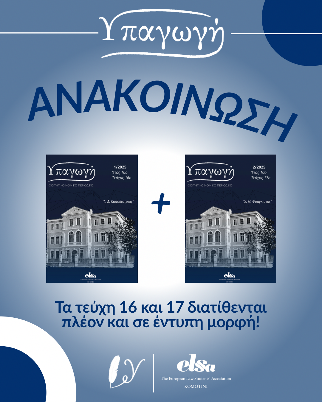 Αγαπητό αναγνωστικό κοινό της «Υπαγωγής»,